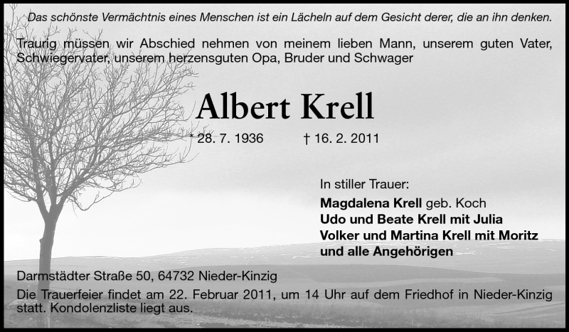 Hier finden Sie alle Traueranzeigen aus der Zeitung, die bisher für Albert Knell erschienen sind. Weitere Traueranzeigen, die in der Zeitung erscheinen, werden hier ebenfalls aufgelistet