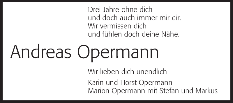 Hier finden Sie alle Traueranzeigen aus der Zeitung, die bisher für Andreas Opermann erschienen sind. Weitere Traueranzeigen, die in der Zeitung erscheinen, werden hier ebenfalls aufgelistet