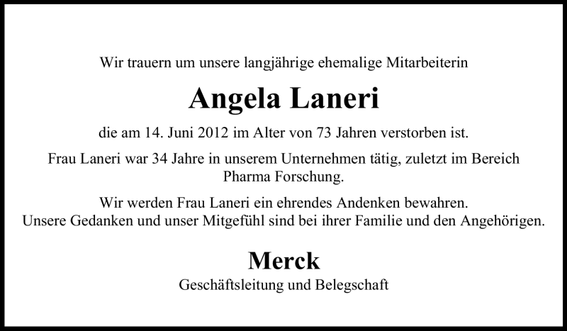 Hier finden Sie alle Traueranzeigen aus der Zeitung, die bisher für Angela Laneri erschienen sind. Weitere Traueranzeigen, die in der Zeitung erscheinen, werden hier ebenfalls aufgelistet
