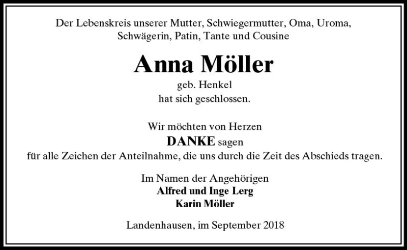 Hier finden Sie alle Traueranzeigen aus der Zeitung, die bisher für Anna Möller erschienen sind. Weitere Traueranzeigen, die in der Zeitung erscheinen, werden hier ebenfalls aufgelistet