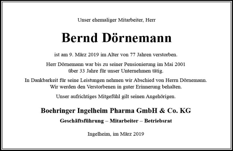 Hier finden Sie alle Traueranzeigen aus der Zeitung, die bisher für Bernd Dörnemann erschienen sind. Weitere Traueranzeigen, die in der Zeitung erscheinen, werden hier ebenfalls aufgelistet