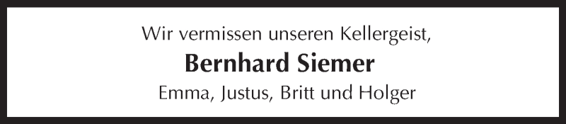 Hier finden Sie alle Traueranzeigen aus der Zeitung, die bisher für Bernhard Siemer erschienen sind. Weitere Traueranzeigen, die in der Zeitung erscheinen, werden hier ebenfalls aufgelistet