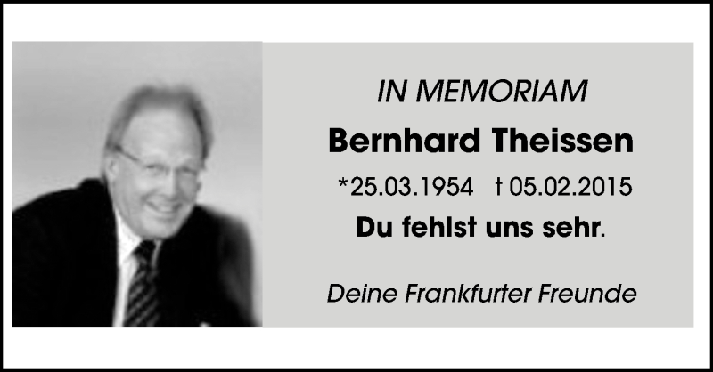 Hier finden Sie alle Traueranzeigen aus der Zeitung, die bisher für Bernhard Theissen erschienen sind. Weitere Traueranzeigen, die in der Zeitung erscheinen, werden hier ebenfalls aufgelistet