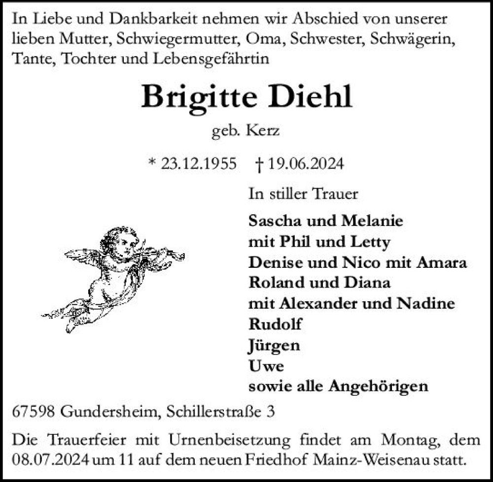 Hier finden Sie alle Traueranzeigen aus der Zeitung, die bisher für Brigitte Diehl erschienen sind. Weitere Traueranzeigen, die in der Zeitung erscheinen, werden hier ebenfalls aufgelistet