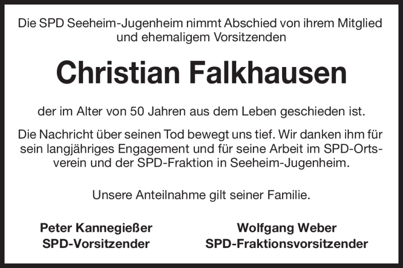 Hier finden Sie alle Traueranzeigen aus der Zeitung, die bisher für Christian Falkhausen erschienen sind. Weitere Traueranzeigen, die in der Zeitung erscheinen, werden hier ebenfalls aufgelistet