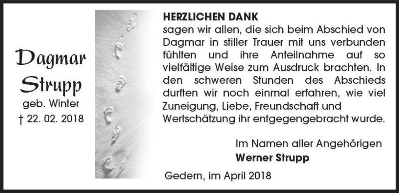 Hier finden Sie alle Traueranzeigen aus der Zeitung, die bisher für Dagmar Strupp erschienen sind. Weitere Traueranzeigen, die in der Zeitung erscheinen, werden hier ebenfalls aufgelistet