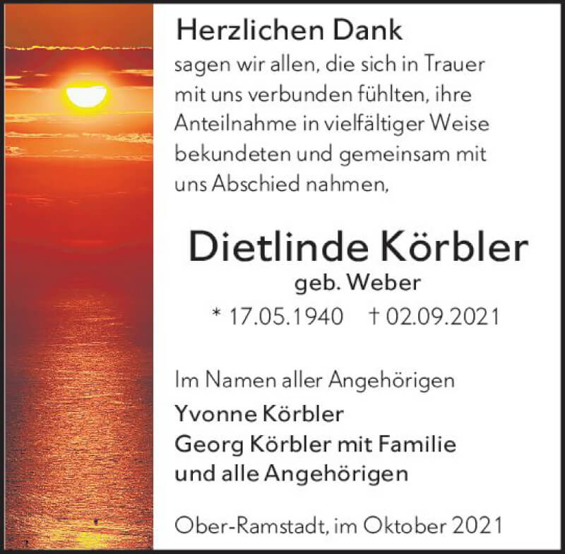 Hier finden Sie alle Traueranzeigen aus der Zeitung, die bisher für Dietlinde Körbler erschienen sind. Weitere Traueranzeigen, die in der Zeitung erscheinen, werden hier ebenfalls aufgelistet