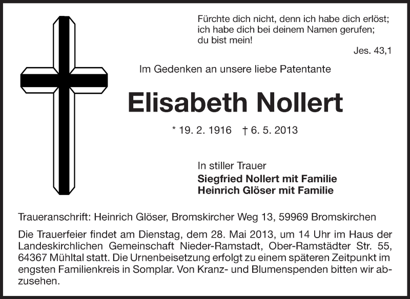 Hier finden Sie alle Traueranzeigen aus der Zeitung, die bisher für Elisabeth Nollert erschienen sind. Weitere Traueranzeigen, die in der Zeitung erscheinen, werden hier ebenfalls aufgelistet