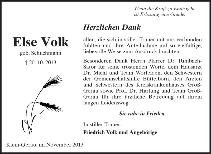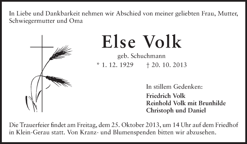 Hier finden Sie alle Traueranzeigen aus der Zeitung, die bisher für Else Volk erschienen sind. Weitere Traueranzeigen, die in der Zeitung erscheinen, werden hier ebenfalls aufgelistet