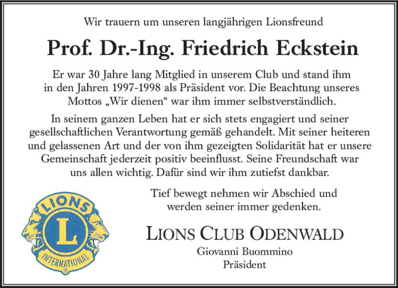 Hier finden Sie alle Traueranzeigen aus der Zeitung, die bisher für Friedrich Eckstein erschienen sind. Weitere Traueranzeigen, die in der Zeitung erscheinen, werden hier ebenfalls aufgelistet