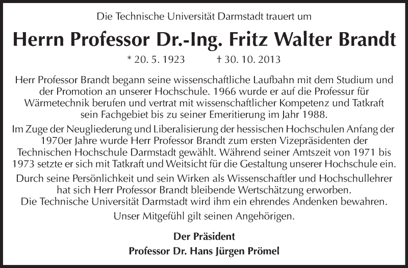 Hier finden Sie alle Traueranzeigen aus der Zeitung, die bisher für Fritz Walter Brandt erschienen sind. Weitere Traueranzeigen, die in der Zeitung erscheinen, werden hier ebenfalls aufgelistet