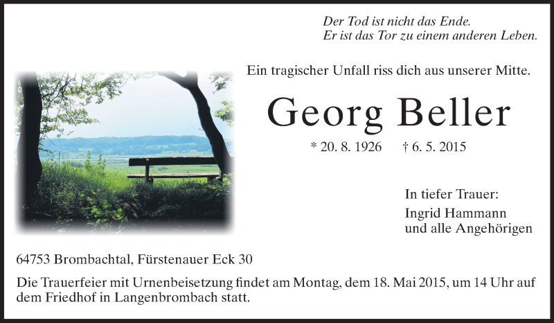 Hier finden Sie alle Traueranzeigen aus der Zeitung, die bisher für Georg Beller erschienen sind. Weitere Traueranzeigen, die in der Zeitung erscheinen, werden hier ebenfalls aufgelistet
