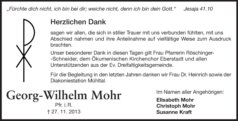 Hier finden Sie alle Traueranzeigen aus der Zeitung, die bisher für Georg-Wilhelm Mohr erschienen sind. Weitere Traueranzeigen, die in der Zeitung erscheinen, werden hier ebenfalls aufgelistet