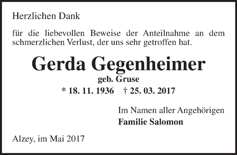 Hier finden Sie alle Traueranzeigen aus der Zeitung, die bisher für Gerda Gegenheimer erschienen sind. Weitere Traueranzeigen, die in der Zeitung erscheinen, werden hier ebenfalls aufgelistet