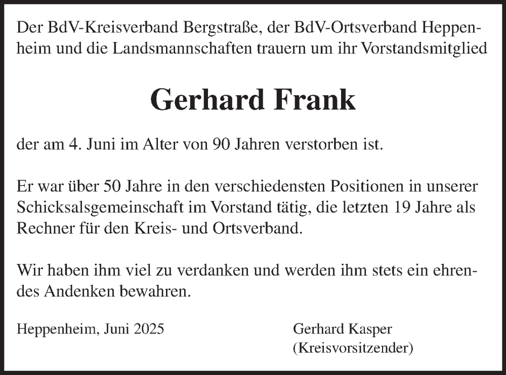 Hier finden Sie alle Traueranzeigen aus der Zeitung, die bisher für Gerhard Frank erschienen sind. Weitere Traueranzeigen, die in der Zeitung erscheinen, werden hier ebenfalls aufgelistet