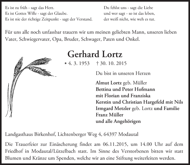Hier finden Sie alle Traueranzeigen aus der Zeitung, die bisher für Gerhard Lortz erschienen sind. Weitere Traueranzeigen, die in der Zeitung erscheinen, werden hier ebenfalls aufgelistet