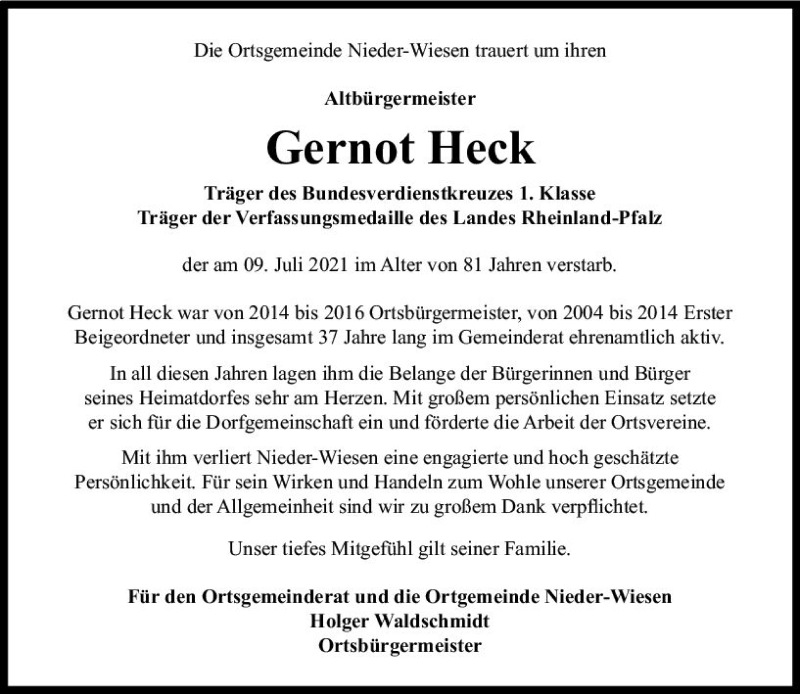Hier finden Sie alle Traueranzeigen aus der Zeitung, die bisher für Gernot Heck erschienen sind. Weitere Traueranzeigen, die in der Zeitung erscheinen, werden hier ebenfalls aufgelistet