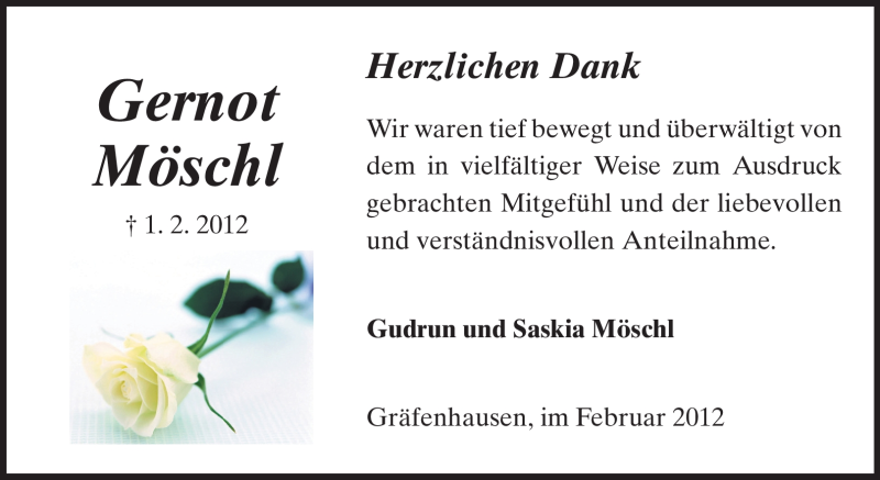 Hier finden Sie alle Traueranzeigen aus der Zeitung, die bisher für Gernot Möschl erschienen sind. Weitere Traueranzeigen, die in der Zeitung erscheinen, werden hier ebenfalls aufgelistet