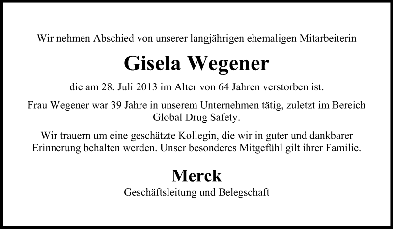 Hier finden Sie alle Traueranzeigen aus der Zeitung, die bisher für Gisela Wegener erschienen sind. Weitere Traueranzeigen, die in der Zeitung erscheinen, werden hier ebenfalls aufgelistet
