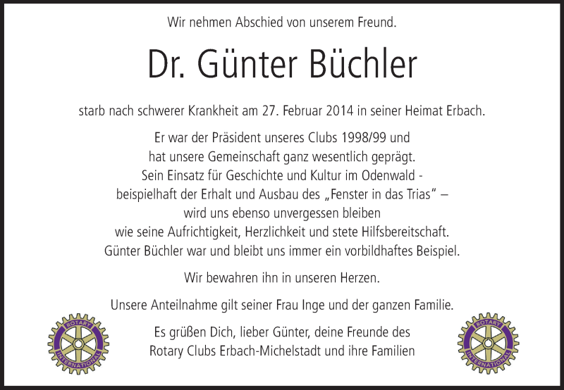 Hier finden Sie alle Traueranzeigen aus der Zeitung, die bisher für Günter Büchler erschienen sind. Weitere Traueranzeigen, die in der Zeitung erscheinen, werden hier ebenfalls aufgelistet