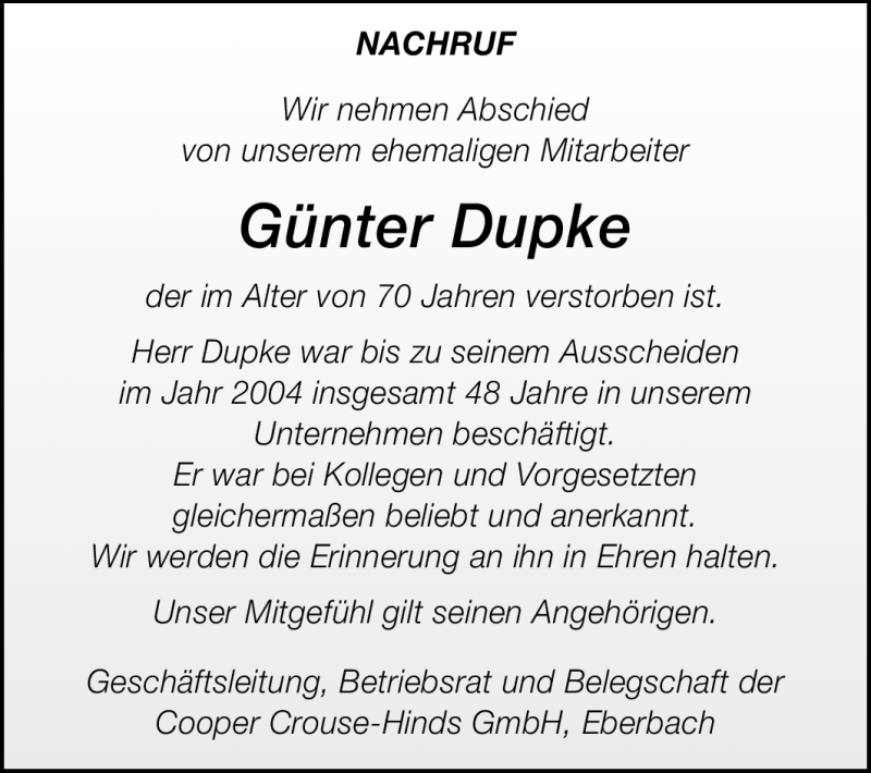 Hier finden Sie alle Traueranzeigen aus der Zeitung, die bisher für Günter Dupke erschienen sind. Weitere Traueranzeigen, die in der Zeitung erscheinen, werden hier ebenfalls aufgelistet