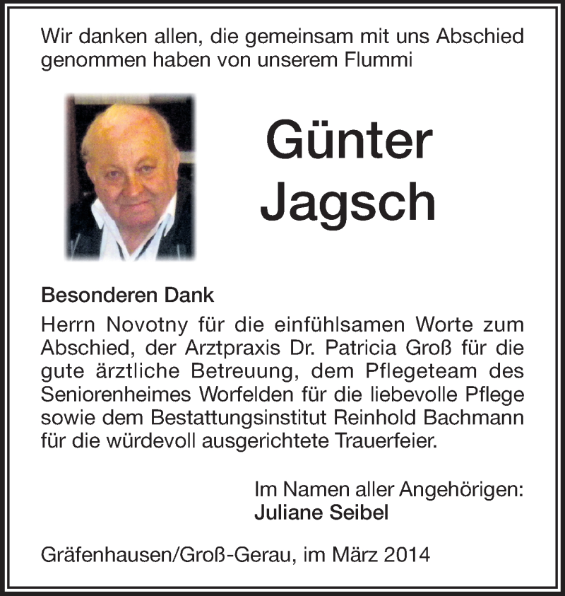 Hier finden Sie alle Traueranzeigen aus der Zeitung, die bisher für Günter Jagsch erschienen sind. Weitere Traueranzeigen, die in der Zeitung erscheinen, werden hier ebenfalls aufgelistet