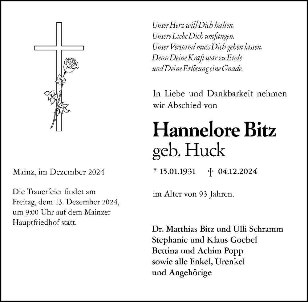 Hier finden Sie alle Traueranzeigen aus der Zeitung, die bisher für Hannelore Bitz erschienen sind. Weitere Traueranzeigen, die in der Zeitung erscheinen, werden hier ebenfalls aufgelistet