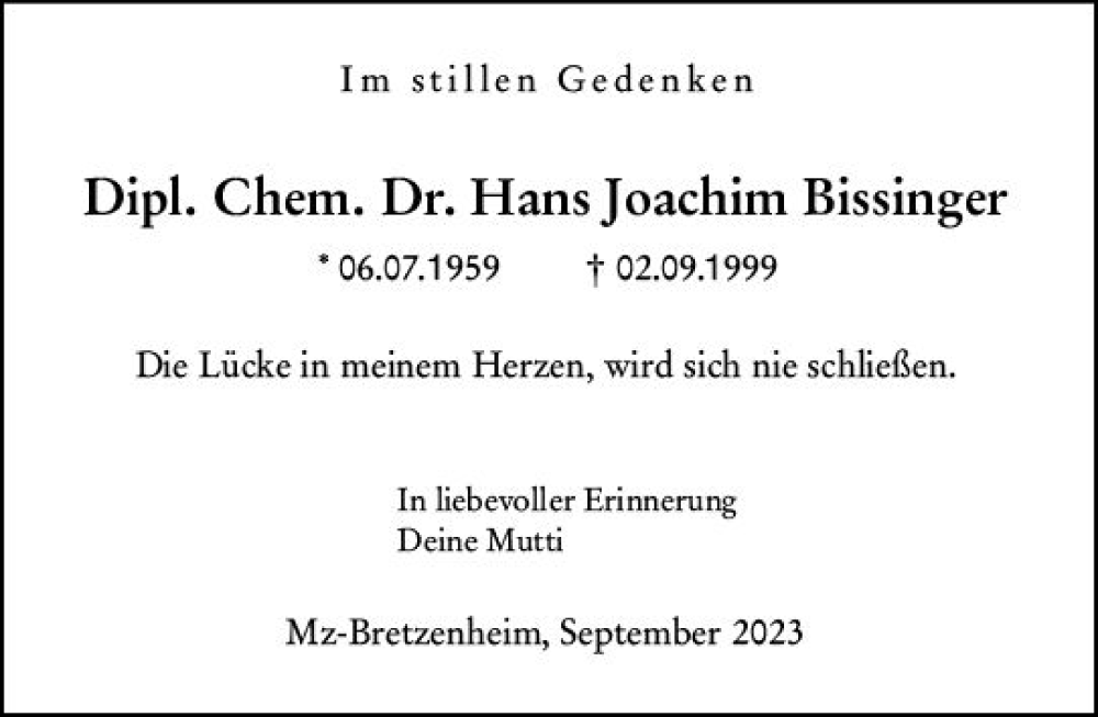 Hier finden Sie alle Traueranzeigen aus der Zeitung, die bisher für Hans Joachim Bissinger erschienen sind. Weitere Traueranzeigen, die in der Zeitung erscheinen, werden hier ebenfalls aufgelistet