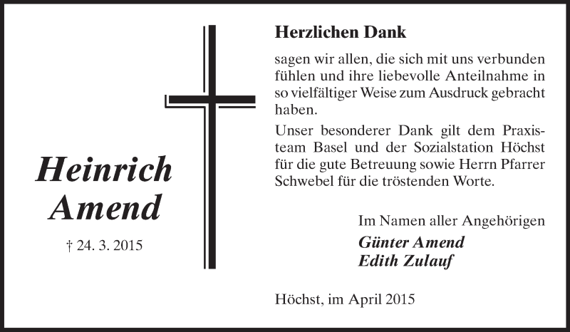 Hier finden Sie alle Traueranzeigen aus der Zeitung, die bisher für Heinrich Amend erschienen sind. Weitere Traueranzeigen, die in der Zeitung erscheinen, werden hier ebenfalls aufgelistet