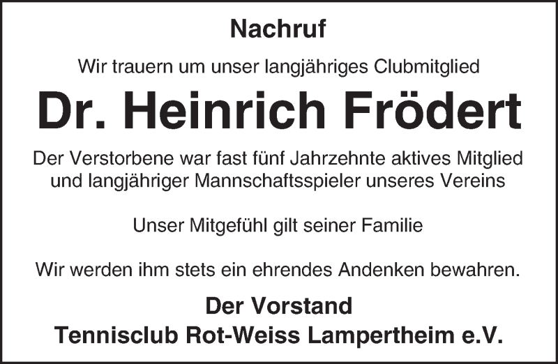 Hier finden Sie alle Traueranzeigen aus der Zeitung, die bisher für Heinrich Frödert erschienen sind. Weitere Traueranzeigen, die in der Zeitung erscheinen, werden hier ebenfalls aufgelistet