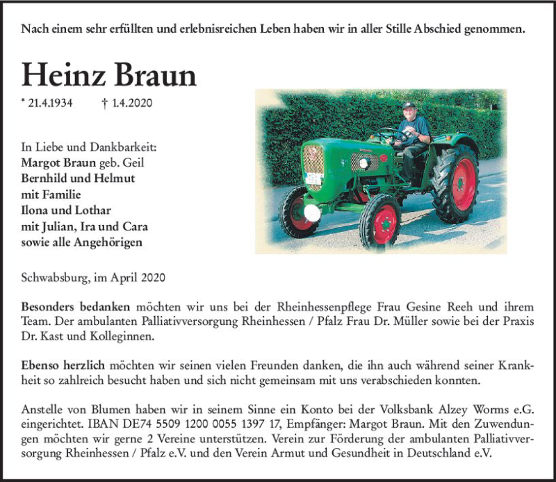 Hier finden Sie alle Traueranzeigen aus der Zeitung, die bisher für Heinz Braun erschienen sind. Weitere Traueranzeigen, die in der Zeitung erscheinen, werden hier ebenfalls aufgelistet