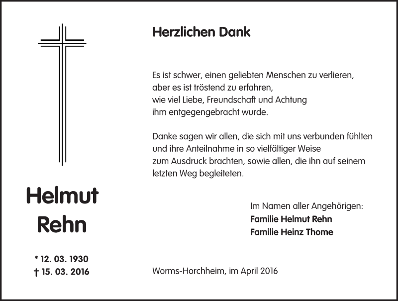 Hier finden Sie alle Traueranzeigen aus der Zeitung, die bisher für Helmut Rehn erschienen sind. Weitere Traueranzeigen, die in der Zeitung erscheinen, werden hier ebenfalls aufgelistet