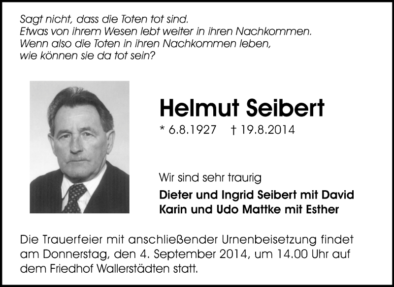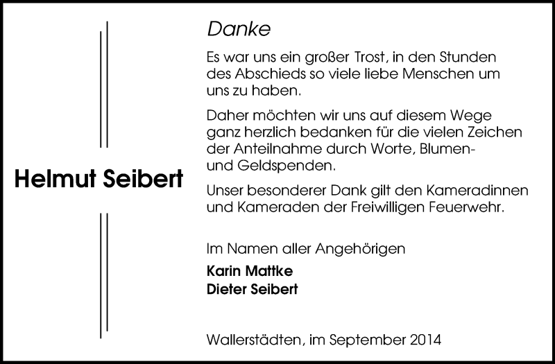 Hier finden Sie alle Traueranzeigen aus der Zeitung, die bisher für Helmut Seibert erschienen sind. Weitere Traueranzeigen, die in der Zeitung erscheinen, werden hier ebenfalls aufgelistet