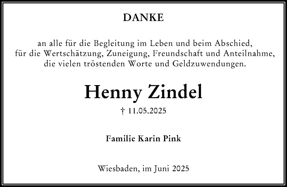 Hier finden Sie alle Traueranzeigen aus der Zeitung, die bisher für Henny Zindel erschienen sind. Weitere Traueranzeigen, die in der Zeitung erscheinen, werden hier ebenfalls aufgelistet