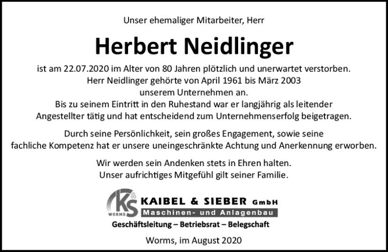 Hier finden Sie alle Traueranzeigen aus der Zeitung, die bisher für Herbert Neidlinger erschienen sind. Weitere Traueranzeigen, die in der Zeitung erscheinen, werden hier ebenfalls aufgelistet