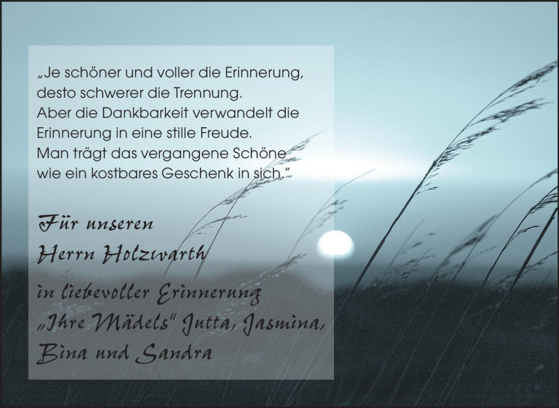 Hier finden Sie alle Traueranzeigen aus der Zeitung, die bisher für Herr Holzwarth erschienen sind. Weitere Traueranzeigen, die in der Zeitung erscheinen, werden hier ebenfalls aufgelistet