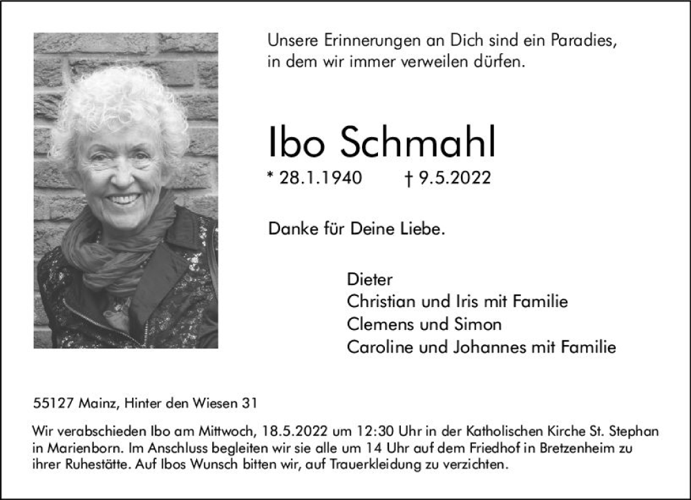 Hier finden Sie alle Traueranzeigen aus der Zeitung, die bisher für Ibo Schmahl erschienen sind. Weitere Traueranzeigen, die in der Zeitung erscheinen, werden hier ebenfalls aufgelistet