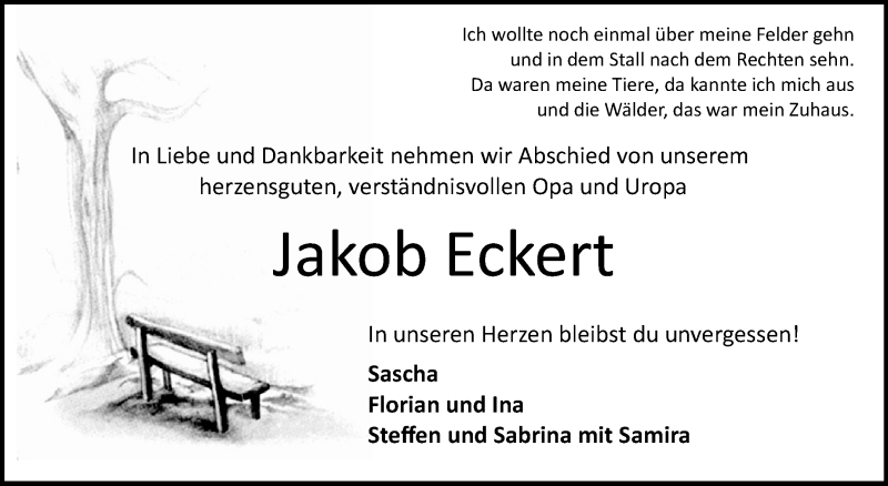 Hier finden Sie alle Traueranzeigen aus der Zeitung, die bisher für Jakob Eckert erschienen sind. Weitere Traueranzeigen, die in der Zeitung erscheinen, werden hier ebenfalls aufgelistet