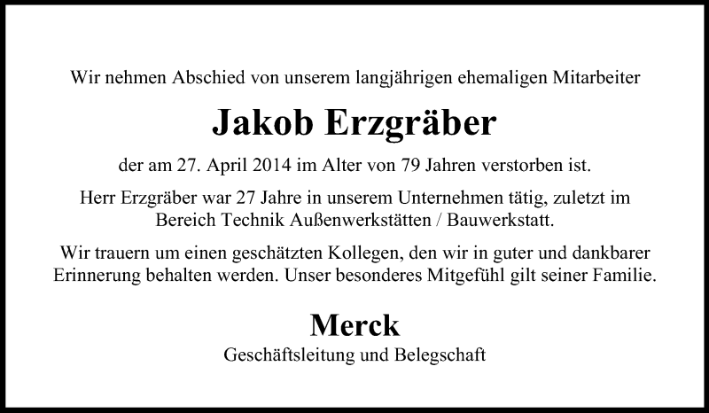 Hier finden Sie alle Traueranzeigen aus der Zeitung, die bisher für Jakob Erzgräber erschienen sind. Weitere Traueranzeigen, die in der Zeitung erscheinen, werden hier ebenfalls aufgelistet
