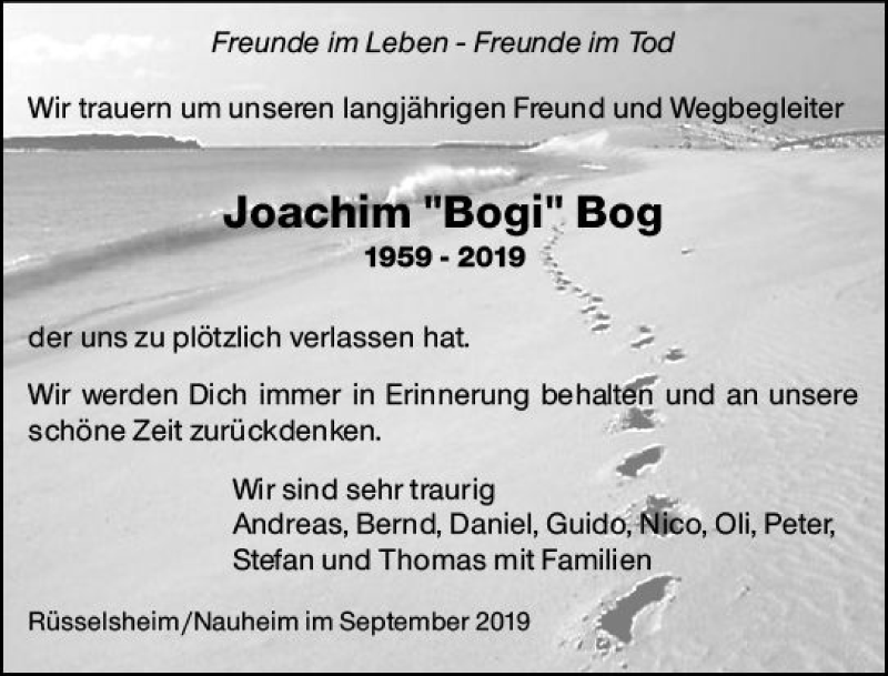 Hier finden Sie alle Traueranzeigen aus der Zeitung, die bisher für Joachim Bog erschienen sind. Weitere Traueranzeigen, die in der Zeitung erscheinen, werden hier ebenfalls aufgelistet