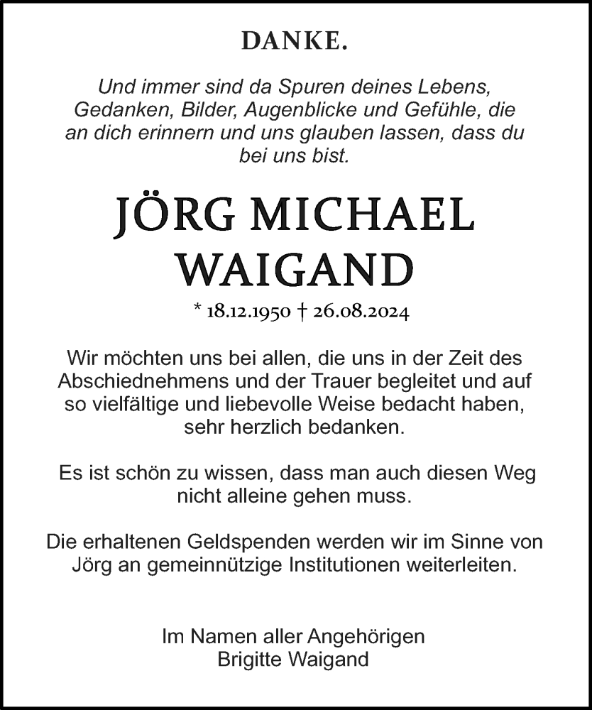 Hier finden Sie alle Traueranzeigen aus der Zeitung, die bisher für Jörg Michael Waigand erschienen sind. Weitere Traueranzeigen, die in der Zeitung erscheinen, werden hier ebenfalls aufgelistet