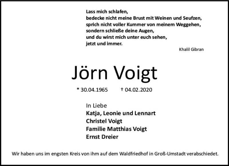 Hier finden Sie alle Traueranzeigen aus der Zeitung, die bisher für Jörn Voigt erschienen sind. Weitere Traueranzeigen, die in der Zeitung erscheinen, werden hier ebenfalls aufgelistet