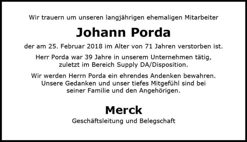 Hier finden Sie alle Traueranzeigen aus der Zeitung, die bisher für Johann Porda erschienen sind. Weitere Traueranzeigen, die in der Zeitung erscheinen, werden hier ebenfalls aufgelistet