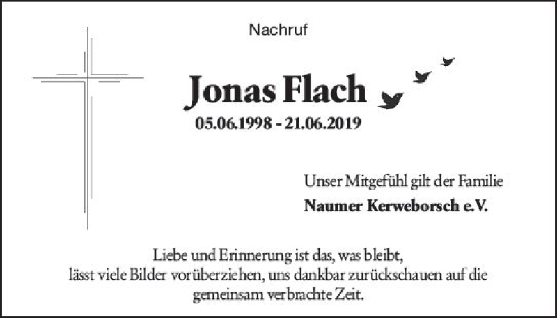 Hier finden Sie alle Traueranzeigen aus der Zeitung, die bisher für Jonas Flach erschienen sind. Weitere Traueranzeigen, die in der Zeitung erscheinen, werden hier ebenfalls aufgelistet