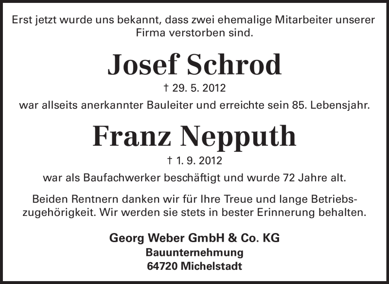 Hier finden Sie alle Traueranzeigen aus der Zeitung, die bisher für Josef Schrod erschienen sind. Weitere Traueranzeigen, die in der Zeitung erscheinen, werden hier ebenfalls aufgelistet