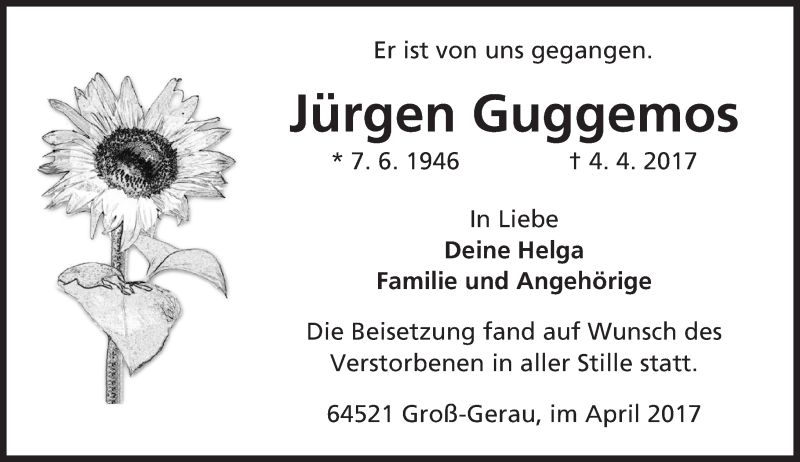 Hier finden Sie alle Traueranzeigen aus der Zeitung, die bisher für Jürgen Guggemos erschienen sind. Weitere Traueranzeigen, die in der Zeitung erscheinen, werden hier ebenfalls aufgelistet
