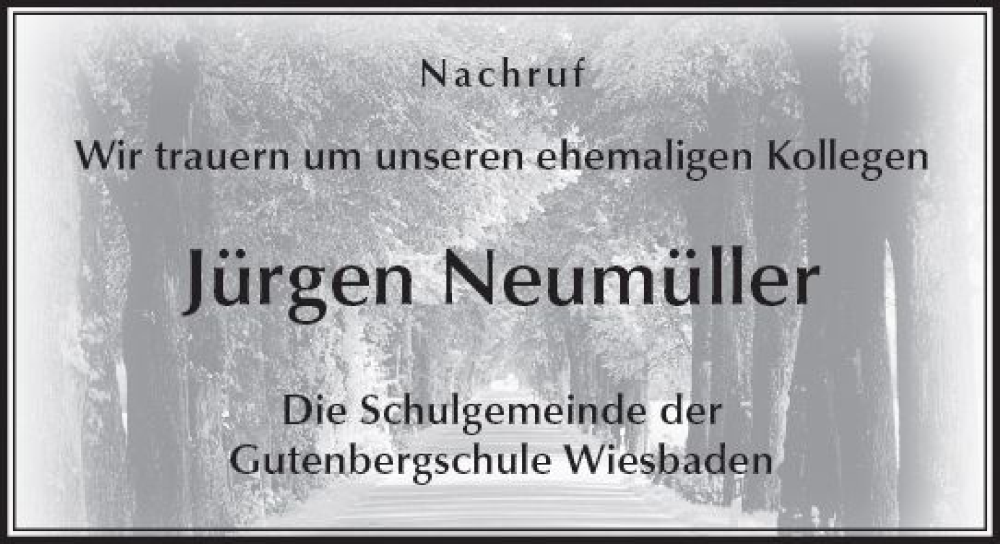 Hier finden Sie alle Traueranzeigen aus der Zeitung, die bisher für Jürgen Neumüller erschienen sind. Weitere Traueranzeigen, die in der Zeitung erscheinen, werden hier ebenfalls aufgelistet