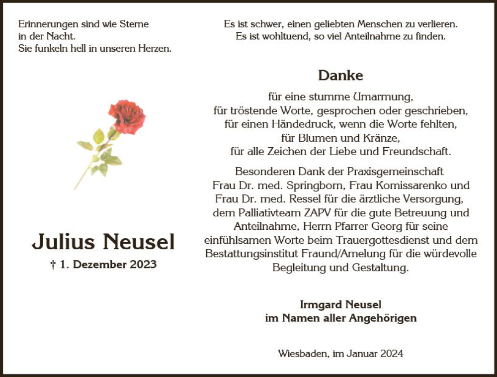 Hier finden Sie alle Traueranzeigen aus der Zeitung, die bisher für Julius Heus erschienen sind. Weitere Traueranzeigen, die in der Zeitung erscheinen, werden hier ebenfalls aufgelistet