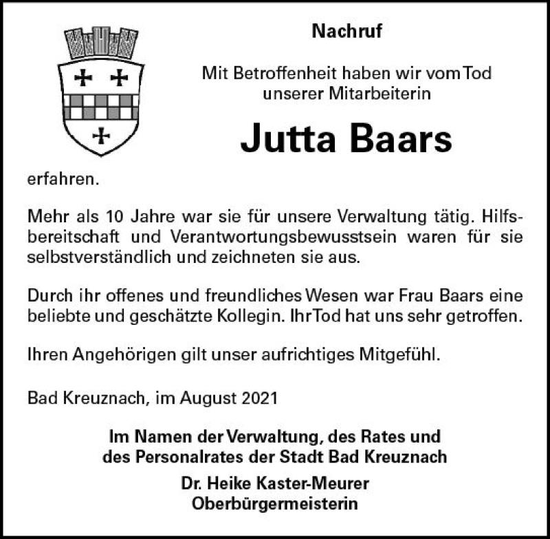 Hier finden Sie alle Traueranzeigen aus der Zeitung, die bisher für Jutta Baars erschienen sind. Weitere Traueranzeigen, die in der Zeitung erscheinen, werden hier ebenfalls aufgelistet