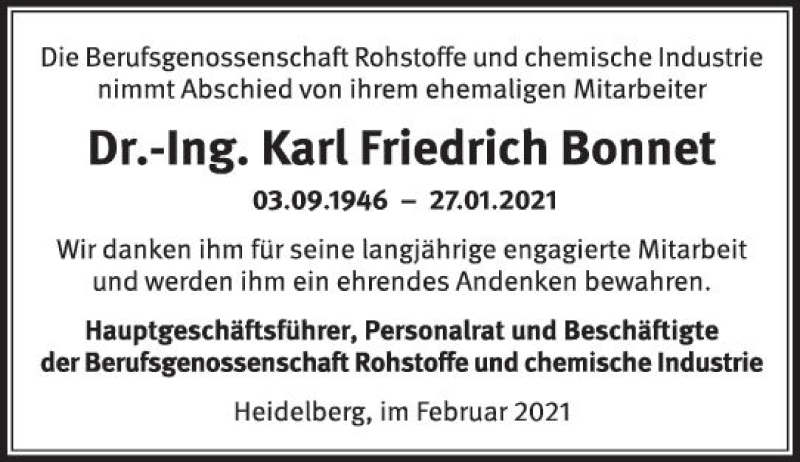 Hier finden Sie alle Traueranzeigen aus der Zeitung, die bisher für Karl Friedrich Bonnet erschienen sind. Weitere Traueranzeigen, die in der Zeitung erscheinen, werden hier ebenfalls aufgelistet